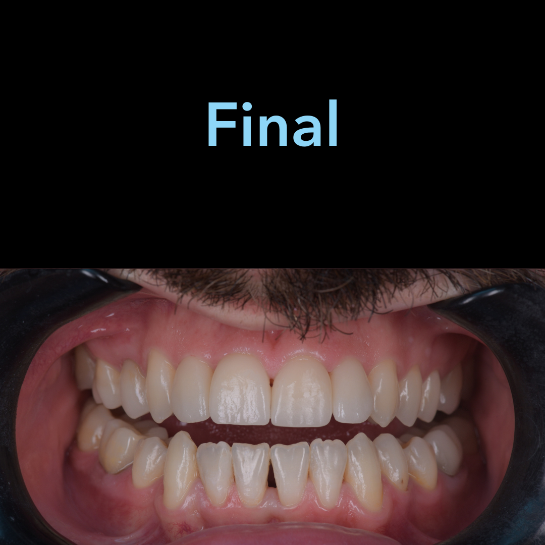 Vrei un zambet la fel?Pacientul s-a prezentat în cadrul clinicii noastre cu probleme de estetică dentară, însă a soluționat pe parcursul planului de tratament și micile disfuncții regăsite la nivelul componentei funcționale a zâmbetului său.